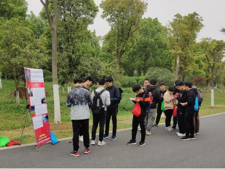 春日阳光和煦,同学们于西校区北门集合后随即乘车前往南艳湖公园,在公园广场上合影之后即开始了本次的主题活动。活动结合了两项主要内容,即“南艳湖健步走”和“党史知识问答”。依照党的重要思想和发展历程,我们在南艳湖畔预设5个打卡点,并制作精美的党史知识学习卡片和海报供同学们学习。