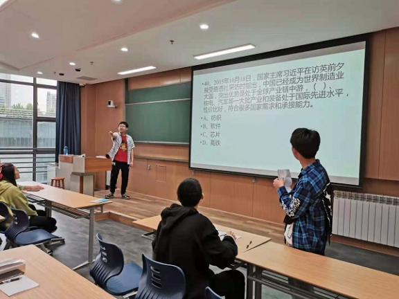 本次党史知识竞答,共准备了50道题目,题目均来自于学习强国app,通过播放幻灯片的方式进行抢答,每答对一题加2分,答错一题减1分。现场氛围热烈,大家积极举手抢答,前三名同学分别是:罗阳,22分;张嘉俊,15分;王森,13分。