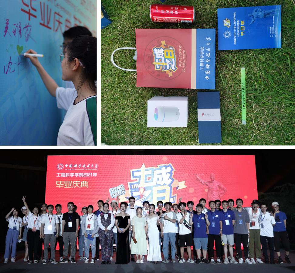 本次毕业庆典是工程科学学院党史学习教育系列活动之一,由工程科学学院党委主办,院团委、研究生会、学生会承办。庆典为学院全体毕业生设计准备了毕业纪念品,庆典当日签名墙和拍照打卡点,希望每一位工程科学学院毕业生无论身在何方都始终牢记红专并进、理实交融、科教报国、追求卓越的科大精神。聚是一团火,散是满天星,相信毕业生们会带着这份精神与对新世界的勇气和好奇走向崭新的舞台,书写精彩的人生篇章。
