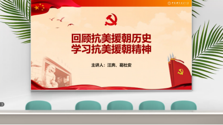 为进一步弘扬爱国主义精神,增强新时代青年党员的责任感与使命感,巩固“不忘初心 牢记使命”的主题教育成果,深化“四史”学习教育,工程科学学院精密机械与精密仪器系2019级硕士生党支部于8月25日在线上开展了“回顾抗美援朝历史,学习抗美援朝精神”主题党日学习活动。活动由支委会汪奔、葛杜安同志共同主持并担任主讲,全体支部党员线上参加活动。