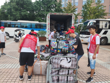 9月28日,先研院的志愿者们也早早等待在下车地点。行李一批一批运送过来,志愿者们一趟一趟地将行李按照标记转移到对应的宿舍楼临时存放点,并且引导搬迁学生入住。烈日当空,志愿者们都大汗淋漓。但是本着“为人民服务”的思想,党员志愿者们争先发挥先锋模范带头作用,为群众办实事,任劳任怨。