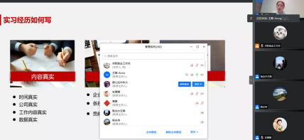 9月10日,天津大学就业指导中心职业生涯规划师杨婷老师主讲的“招聘笔试技巧”在线上进行,杨婷从笔试技巧、题型训练、解题思路等三个方面为同学们进行了详细讲解,耐心解答了同学们提出的各种问题,受到同学们的一致好评。