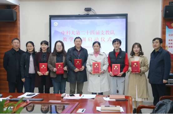 会上,还举行了中国科学技术大学研究生支教团第24届支教队教学培训指导老师聘任仪式。本次教学培训启动会后,第24届支教队员将在附中进行两个学期的专业教学培训工作。