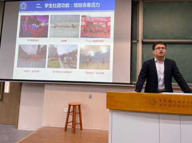 会上,刘淇从学生社团概况、学生社团功能、管理指导模式三个方面对我校学生社团进行了介绍。他强调,学生社团应进一步发挥在加强思想引领、繁荣校园文化、绽放青春活力等方面的重要作用,为同学们提供更多展示风采、提升自我、实现价值的机会。