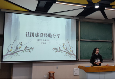 校学生民族乐团柯雨轩分享了社团的建设经验。她介绍了民族乐团的组织架构,从事务经验积累、节省沟通时间、新任言传身教三方面讲解了宣传部多媒体体系建设经验。