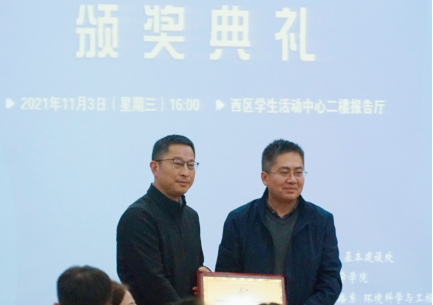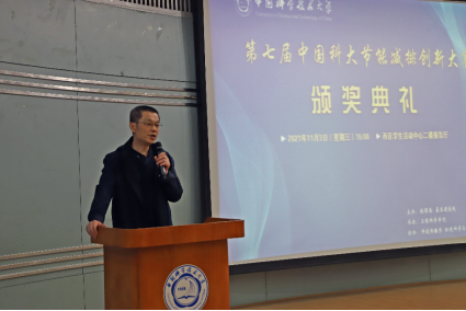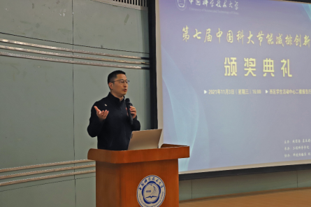 周丛照还为大赛组委会颁发了优秀组织奖,热科学和能源工程系党总支书记胡芃作为第七届中国科大节能减排创新大赛组委会代表上台领奖。