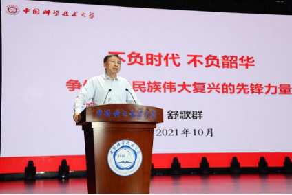 10月13日下午,学院组织全体本科新生来到东区大礼堂,聆听校党委书记舒歌群主讲的丰富深刻而又激动人心的“精神食粮”——以《不负时代不负韶华争做中华民族伟大复兴的先锋力量》为题的第一堂思政课。舒书记从“弘扬伟大建党精神 坚定理想信念”“牢记科大初心使命 赓续红色血脉”“勇担时代先锋重任 谱写青春华章”三个方面,带领同学们重温中国共产党百年发展的伟大历史以及中国科大三次创业的艰苦历程,勉励同学们牢记初心使命,赓续红色血脉,在实现中华民族伟大复兴的新征程上勇挑重担、勇克难关、勇斗风险,努力做德智体美劳全面发展的社会主义建设者和接班人。这堂思想政治课,让同学们更加坚定理想信念,立志成为推动新时代中国发展的年轻力量,实现伟大的中国梦!