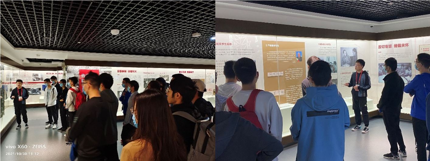 在讲解员的引领下,同学们随后来到钱学森先生诞辰110周年纪念展厅。该展厅以“科技自立自强 培养创新人才”为主题,以大量实物展示了“两弹一星”元勋钱学森先生心系祖国、服务人民的光辉一生。在该展厅中,同学们学习了钱学森先生胸怀祖国的赤子之心、勇攀高峰的卓著贡献和甘为人梯的育人精神。作为我国航天事业的奠基人,钱学森先生为祖国培养了大批尖端人才。他创建了本班所在的近代力学系,担任首任系主任、制定培养计划并亲自授课。他要求近代力学系的老师要按照力学发展的最新内容授课,在加强基础科学教育的同时,把学生直接带到学科的前沿。他以这种“旗杆式”的人才培养模式,亲自指导培养的毕业生中有10位成为两院院士、7位成为将军,铸就了近代力学系勇攀高峰的基因。同学们纷纷表示,钱学森先生的精神激励着一代代的科大人砥砺奋进。吾辈身为近代力学系的学生,当传承和发扬钱学森先生的精神,在拼搏的青春中放飞人生梦想,成就时代华章。