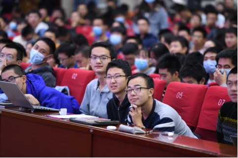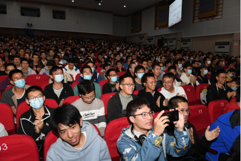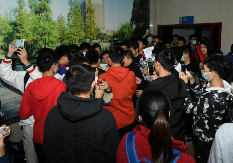 报告会现场座无虚席,报告过程中掌声不断。报告结束后,潘老师被蜂拥而来的同学们团团围住,请求签名和合影。同学们表示,要努力学习,以科学精神追求真理、探索世界,报效祖国。
