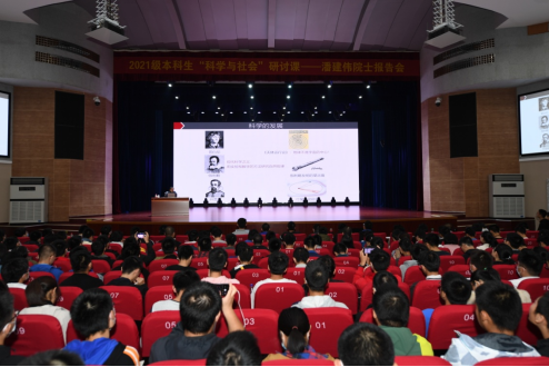 潘建伟院士为2021级本科生作“科学与社会”研讨课主题报告