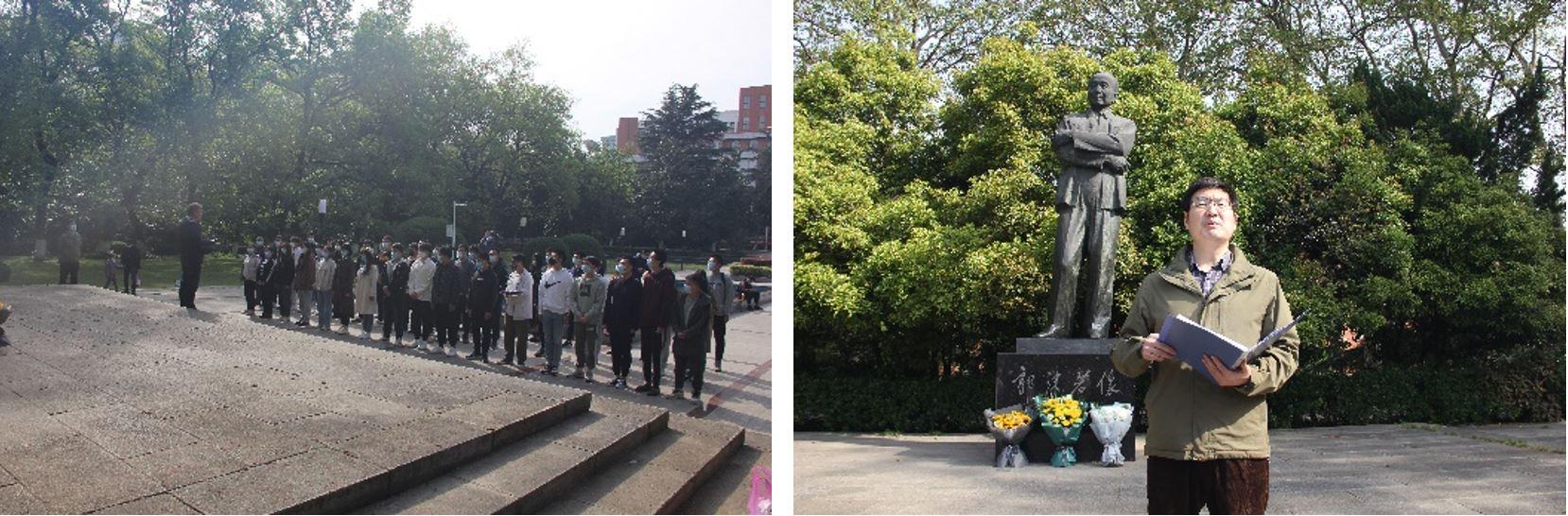 上午9时,同学们准时来到郭沫若广场的雕像前集合,活动由学工部常军老师主持。学生工作部处副部处长刘伟丰致辞,他回顾了新中国成立后多位老科学家的成果贡献,勉励同学们传承老科学家精神,弘扬我校优良传统,深刻铭记“请党放心,强国有我”的号召。当前国内疫情形势严峻复杂,他特别提醒同学们做好个人防护,从我做起,小事做起,共抗疫情。