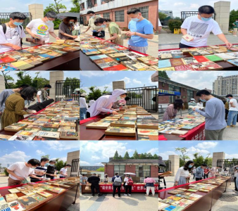 烈日炎炎也挡不住大家对于图书的热情。同学们在规定的时间内认真翻阅着品类众多的图书,仔细挑选感兴趣的英文原版经典作品,仿佛畅游在知识的海洋中。党员志愿者们也应同学们要求热心地为大家提供建议或推荐图书,与同学们交流读书心得。