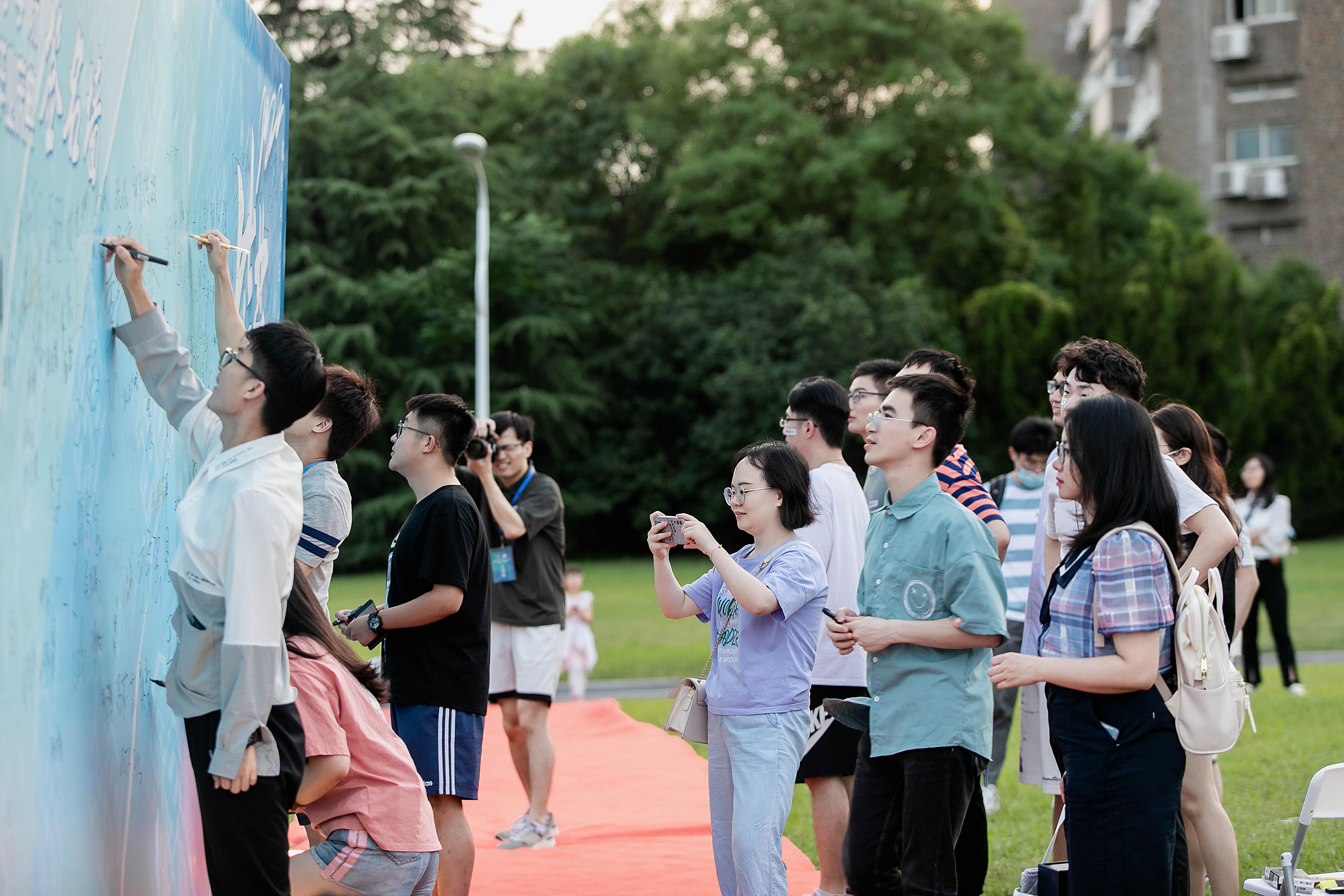 本次庆典暖场环节还设计了领取纪念品、红毯时间和草地打卡,同学们热情签名、踊跃留言、温馨合影,表达对母校的依依不舍和深深祝福。岁月的流逝挥不去执着的梦,时光的飞驰带不走永恒的心,跃入人海,各有风雨灿烂,愿毕业生同学胸怀鲲鹏之志,身行勤奋之径,在人生更大的舞台续写精彩。