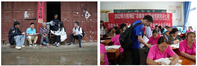 紧接着,实践团在新窑镇中学及联合村开展了为期三天全民素养相关的主题走访和问卷调研。为克服语言障碍,中国科大的同学与六盘水师范的同学结对开展调研,发放“山区儿童的素质教育与互联网+”“普通话的普及”问卷并进行入户走访。实践团全面深入的质性研究成果将有助于学校首个六枝特区支教队的工作开展。
