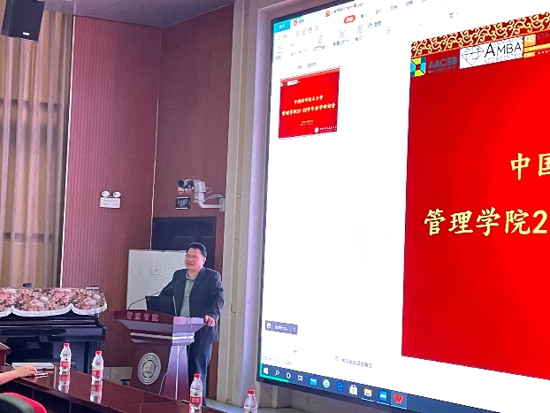 管理学院执行院长余玉刚对学院近年来教学及科研工作进行总结。他指出,管理学院近年来在教学活动规范化、信息化方面取得长足进步,不断扩大生源入口,在教学课程改革、教材专著完善、学生发展等课程培养的各个方面均显著提升。同时,他也就学院部分教学项目、生源优化、师资引进等方面的工作进行了深入剖析,指出现有不足及发展方向,鼓励全体教师围绕立德树人根本任务勇担重任,为创建中国特色世界一流大学贡献力量。