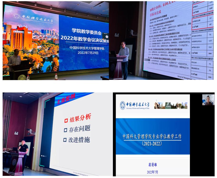 会议前(7月20日-26日),管院授课教师及各学位项目委员会完成了AACSB 系统 AOL 提交,经过各系全体老师及管理人员分组讨论后,各学位委员会审核了 AOL 课程评议材料、教学评价情况,讨论了AOL相关问题、双碳教育落实情况,最后形成教学委员会决议书。