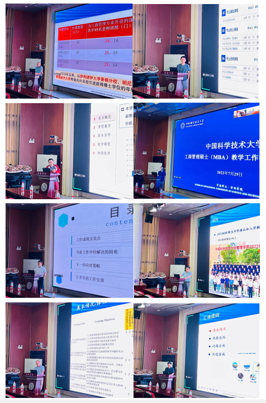 会议的后半程,工商管理系主任吴强教授、管理科学系刘和福教授、统计与金融系主任郑泽敏特任教授、MBA中心副主任曹平特任教授、EMBA中心主任刘志迎教授、MF学位项目主任郭新帅讲师、MLE学位项目主任郭晓龙副教授、MPM学位项目主任张增田副教授分别就各项目教学工作进行了汇报。