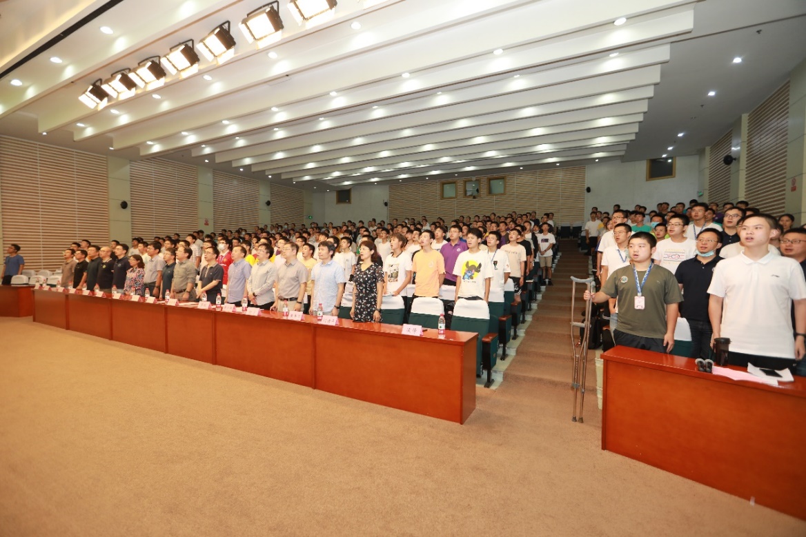 最后,全体师生起立,奏唱校歌,本科生迎新会在豪迈雄壮的校歌声中圆满结束。
