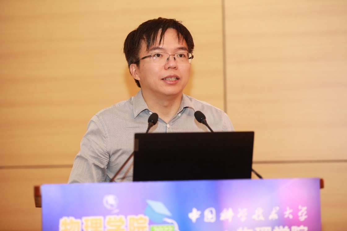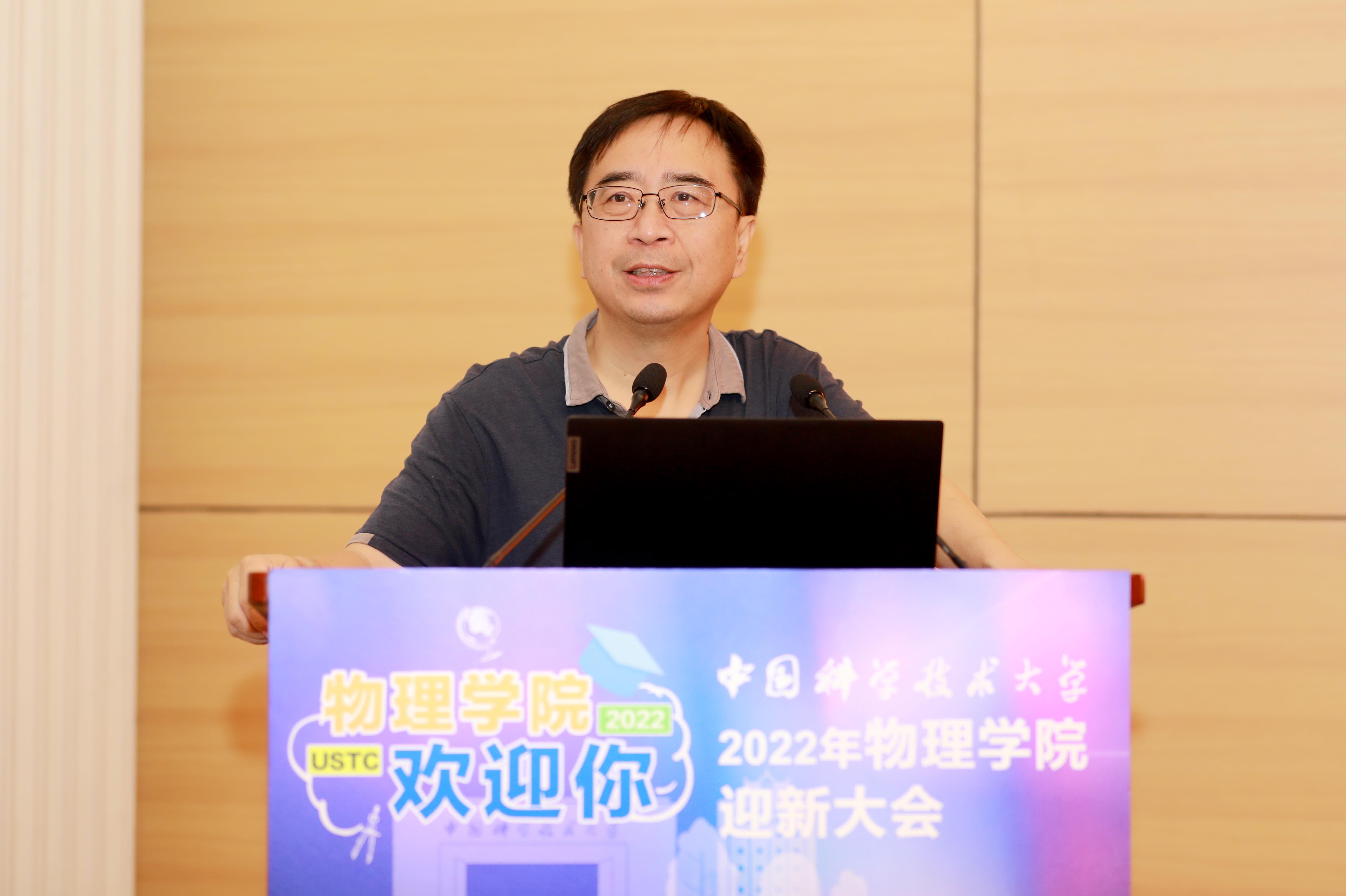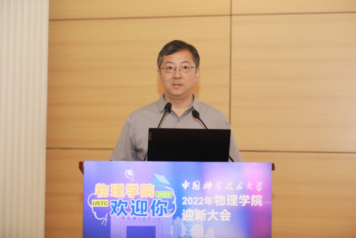 陈宇翱代表物理学院致欢迎辞。他指出,中国科大是一所拥有家国情怀和光辉历史的学校,严济慈、华罗庚、赵忠尧、赵九章等为代表的老一辈科学家们爱国奉献的精神和严谨求实、刻苦钻研的治学态度激励了一代代科大学子。陈宇翱回忆起在科大的岁月,近年来“小而精”的科大在不断升级学习和生活条件的同时,科研和学术氛围更是浓厚。他希望同学们把科大当作自己的家,积极融入科大。他强调一定要打好数理基础,正如习近平总书记所说,“禾苗在地里墩一墩,才能吃土更深、扎根更实,在风雨中抗倒伏、立得住”,陈宇翱嘱咐同学们规划好自己的目标,踏踏实实走好每一步,学好每一门课程,培养自己独立的科学思维能力,珍惜并充分利用好大学的时光,用责任和梦想去重塑心中的象牙塔。