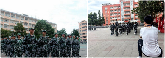 开学后第三周,七年级、八年级开始社会实践活动——军训。作为班主任和任课教师,支教队员们全程陪同学生军训。从最开始班级同学受伤时的手忙脚乱,到后来应对突发事件的从容不迫,支教队员们亲自处理孩子们遇到的各种问题,与他们共同进步和成长。