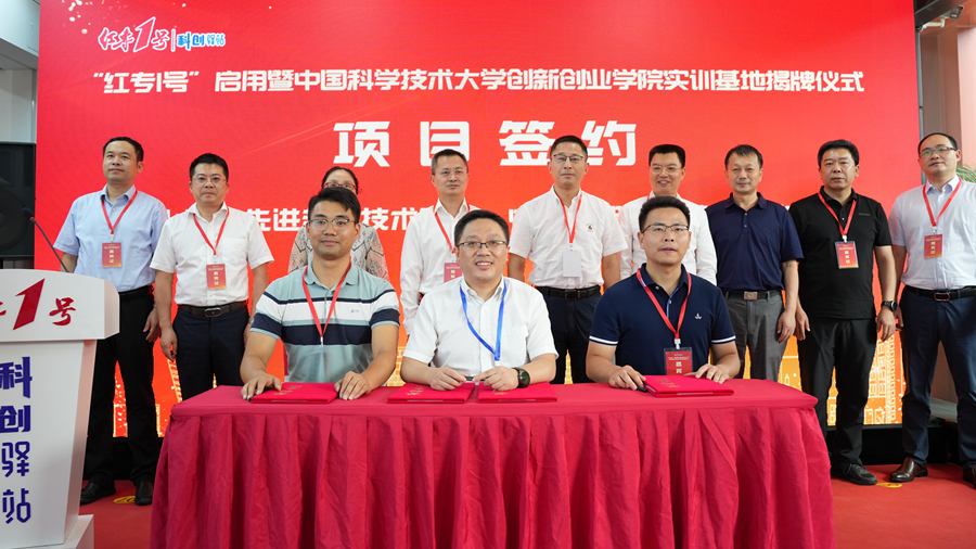 揭牌仪式上,还举行了首批入驻团队签约仪式,我校“雏鹰计划”“雄鹰计划”申报项目“3D先进封装技术”“智能血糖检测仪”“绿色合成生物中间体”“绿色环保复合材料”等4个项目团队成为首批入驻“红专1号”的创新创业项目团队。
