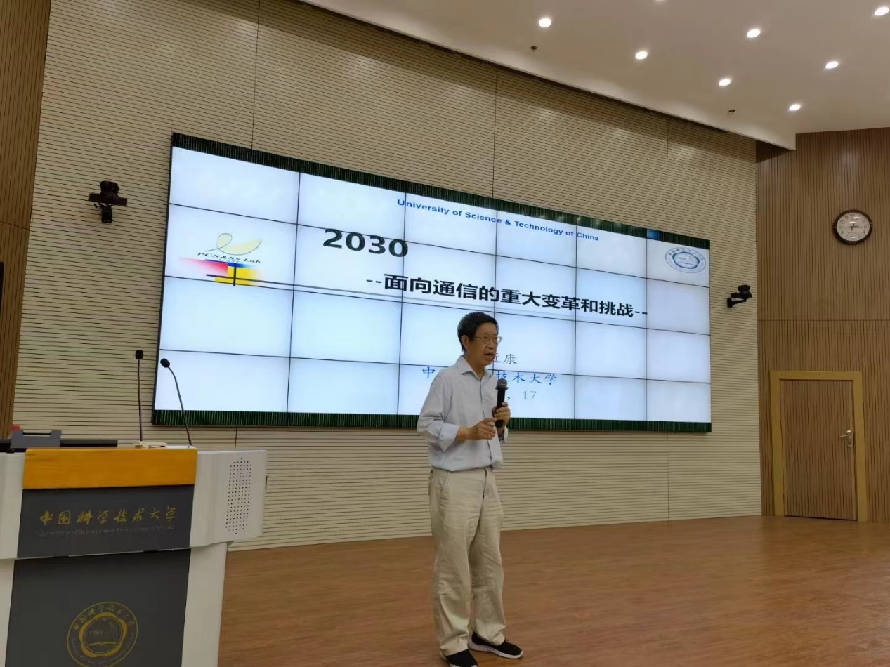 9月17日下午,中国科大信息科学技术学院专业前沿与职业发展系列报告第一讲开讲,我国移动通信领域著名专家、我校个人通信与扩频实验室原主任朱近康教授为与会师生作题为《2030——面向通信的重大变革和挑战》的报告。信息学院副院长李斌、信息学院副书记董新美和学生两百余人参加报告会。