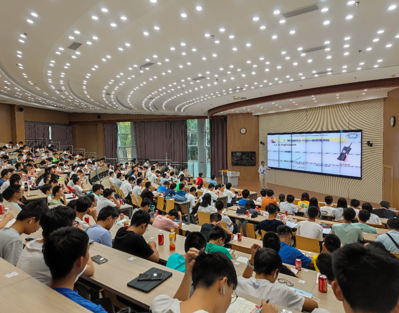 朱近康的报告内容主要分为四个部分。首先,他用科学严谨的语言为同学们详尽地讲述了无线通信的理论基础与演进。随后,他结合历史事实为同学们生动地展现了移动通信从1G到5G的发展历程,重点介绍了通信从4G——“万物物联”到5G——“万物互联”,再到5G-A——“万物智联”的发展与变革。紧接着,朱老师结合行业与市场现状预测了6G的技术需求和应用发展,同时引入了“无线大脑”“元宇宙衍生物”“人形机器人”等一系列新概念与热门话题。