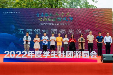 傅尧为荣获“2021-2022学年五星级社团”荣誉称号的社团负责人颁发奖牌,激励他们在新的一年再接再厉,带动全校社团争创更辉煌的成绩。