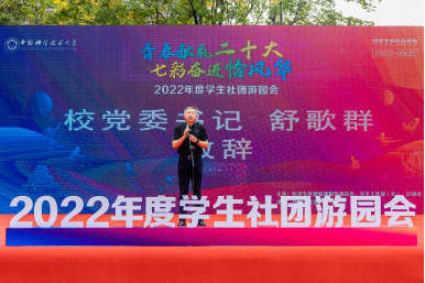舒歌群在致辞中强调了习近平总书记提出的“培养德智体美劳全面发展的社会主义建设者和接班人”的要求。他指出,64周年校庆之际,艺术教学中心揭牌并投入使用,校史馆“郭沫若、严济慈老校长纪念室”开展,在这个银杏铺黄、朝气蓬勃的季节举办社团游园会,也对学生培养多元兴趣、展示多彩才艺提供了更大的舞台,希望大家在艺术、体育、文化等多方面学有所长。他充分肯定了学生社团在繁荣校园文化、服务学校育人格局中所发挥的重要作用,鼓励学生社团找准适合自己的发展方向、不断丰富社团活动的意义与内涵。