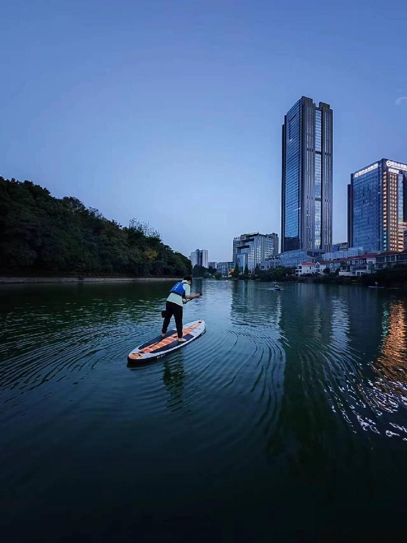 上岸后,趣味项目悉数登场:皮划艇和桨板体验。校龙舟队员对同学们进行了细致的指导。在队员们的鼓励下,同学们跃跃欲试。其中,最有趣味的当属桨板体验了。桨板非常考验平衡力,初次体验时很容易失去平衡、落入水中。同学们全力以赴,万般小心,让人鼓舞的是,这个项目竟只有一人落水。
