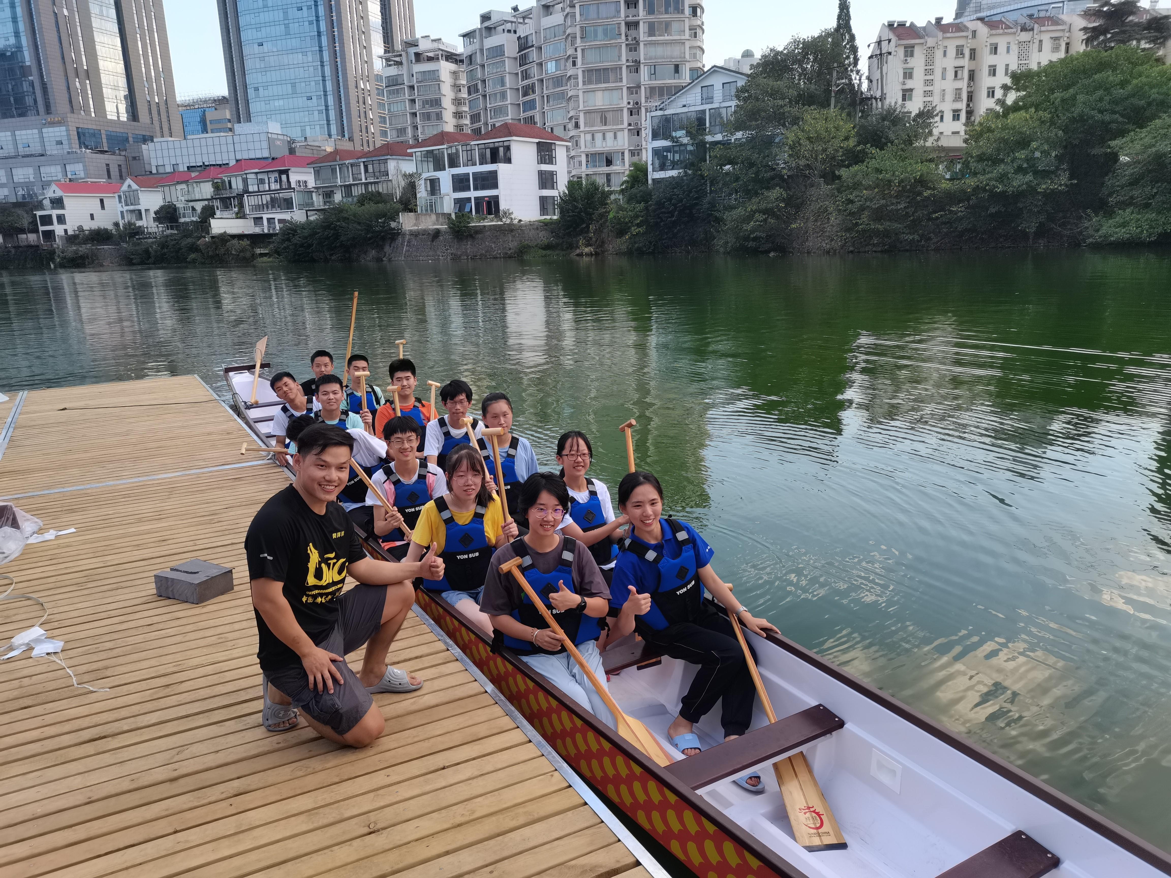 喜迎国庆,骄阳灿烂。2022年10月3日下午,管理学院2022级本科一班的同学们来到校龙舟队稻香楼水上训练基地开展“庆祝祖国华诞、喜迎党的二十大”的主题团日活动,进行了一场别开生面的龙舟体验活动,近距离了感受龙舟运动中所蕴含的同舟共济、勇往直前的中华优秀传统文化精神。活动由班主任樊洋洋及校龙舟队队员组织并带队开展。