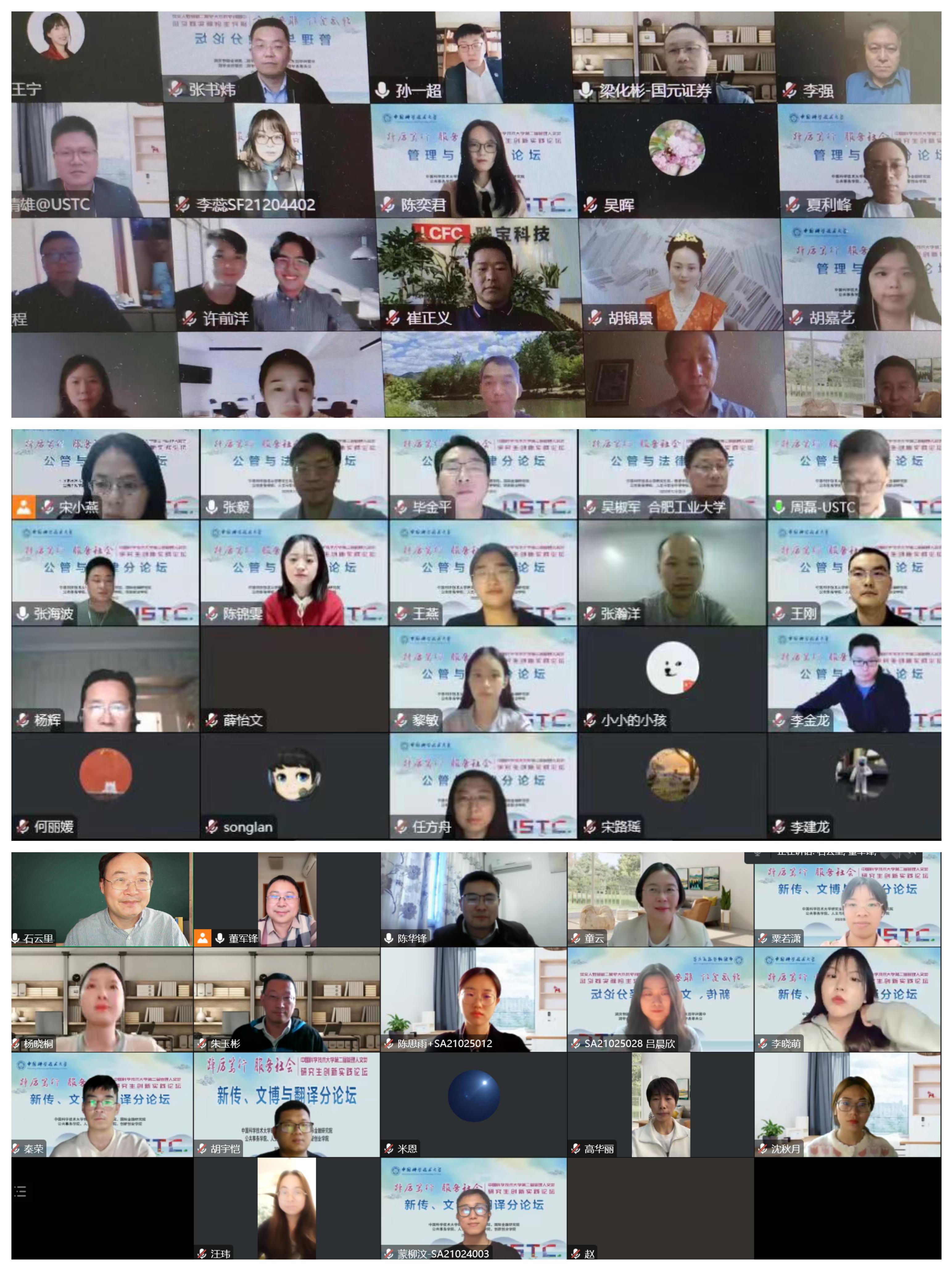 下午14:00,由管理学院、公共事务学院、人文与社会科学学院分别负责举办的“管理与金融”“公管与法律”“新传、文博与翻译”三个分论坛同步进行。