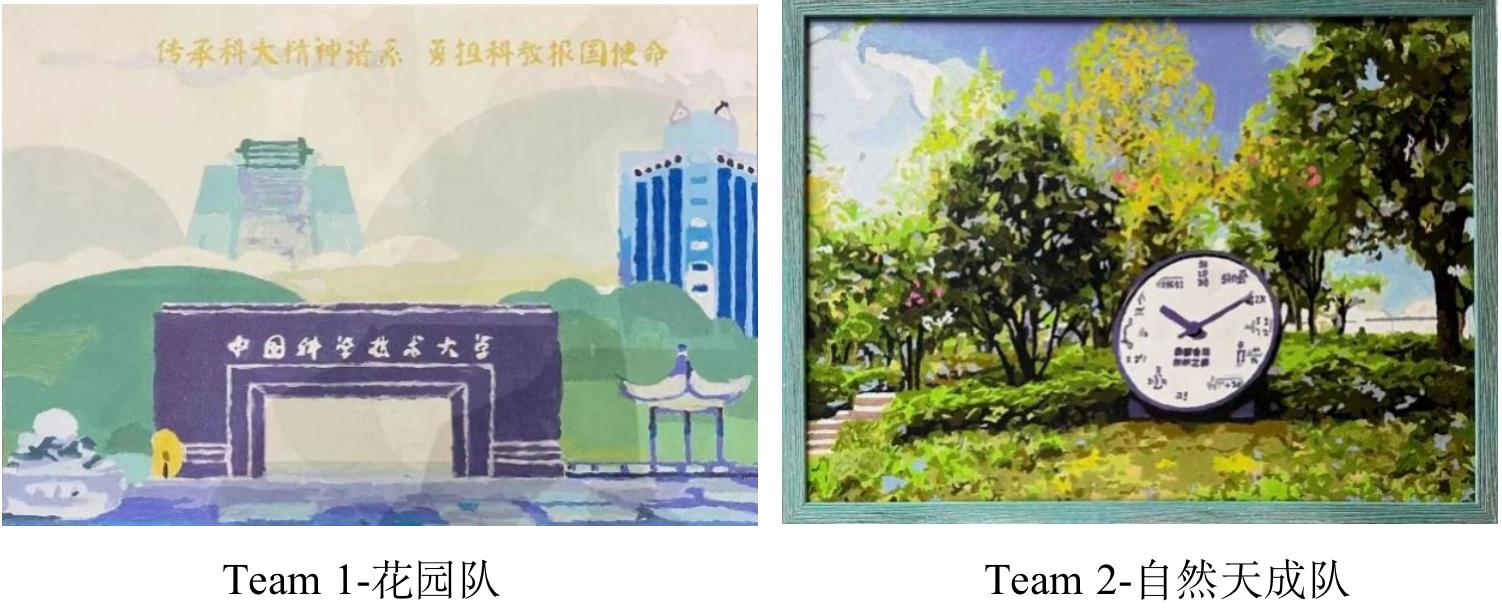 同学们大多2-3人为一队,在选择了画作后便“各显神通”,运用排笔和油彩描绘出一幅幅风格不一的作品。在他们的笔下,有繁华簇拥着的科大校门,有和蔼可亲的老一辈科学家们,还有当年惊天动地的蘑菇云和今日漫漫征途的中国航天梦。