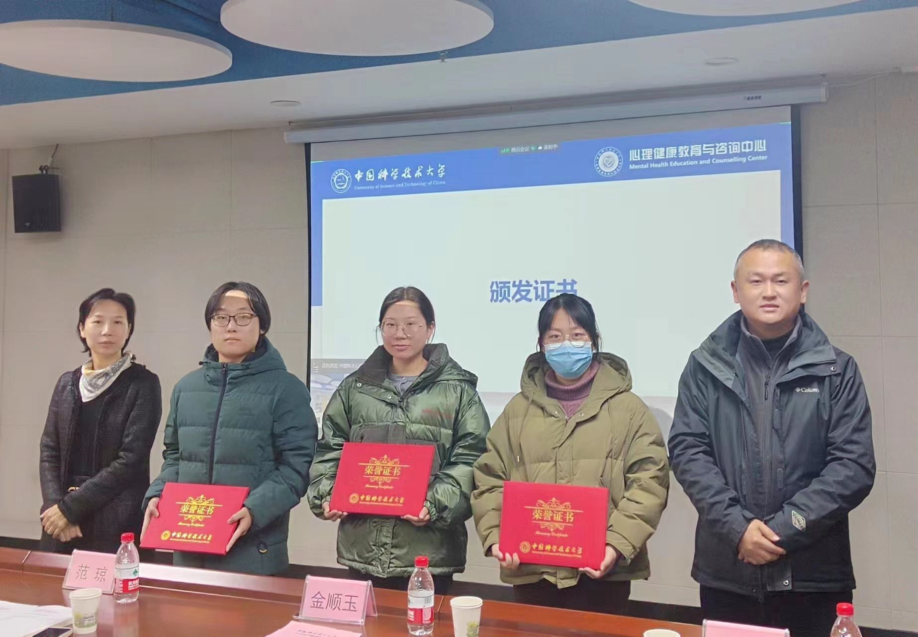 学生工作部(处)副部(处)长金顺玉为2021-2022学年“优秀心理委员”代表颁发荣誉证书;