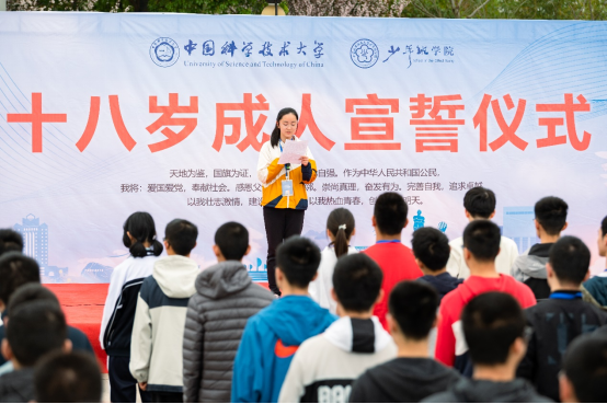 学生党员、郭沫若奖学金获得者陈宝骥作为成人代表发言。他希望同学们静下心来,珍惜机会,刻苦学习;目标明确,以平常心面对困难和挫折,自强不息。他盼望同学们坚持“红专并进、理实交融”的校训,坚守“科教报国、追求卓越”的初心,将爱国主义情怀和时代责任融入个人的理想和追求中去。