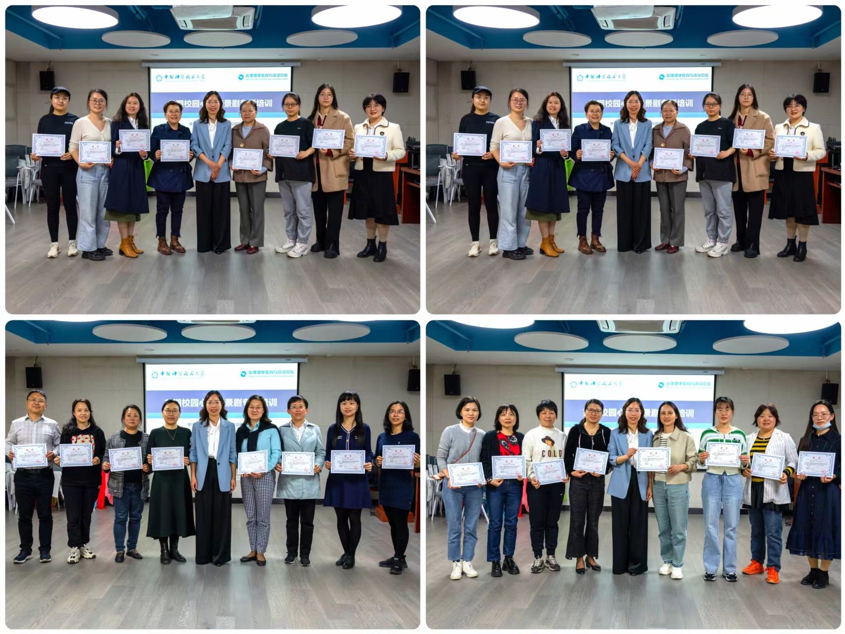 校园心理情景剧是在学校的场景设置下,以促进学生自我探索、自我领悟为目标,围绕对团体或个体有重要意义的某个现象、事件或情景,通过情景再现、角色扮演和训练等一系列技术而进行的心理健康教育活动,在校园里深受学生喜爱和欢迎。通过本次培训,力争形成一支具备专业素养和实践经验的校园心理情景剧队伍,为今后开展更多丰富多彩的校园心理健康教育活动奠定了坚实基础。两天培训结束时,郑敏为参训学员颁发了学时证书。
