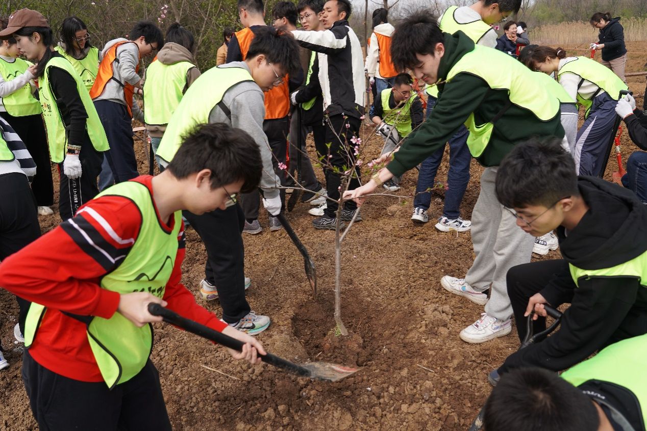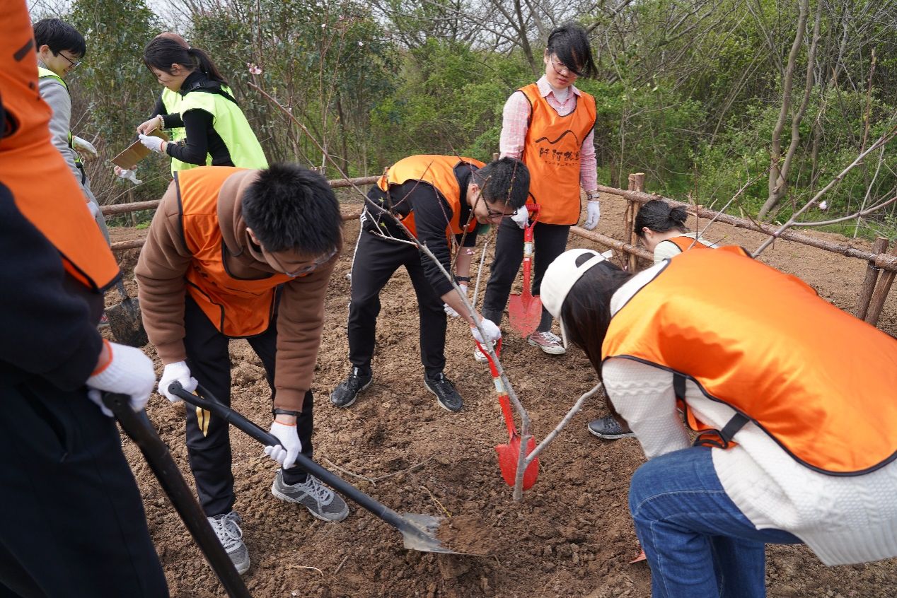 参加活动的全体师生响应“履行植树义务 共建美丽中国”的号召,来到阡陌故里,在工作人员的指导下,种下一棵棵桃树,盼望它们来年长成一片春意。老师与同学们齐心协力、分工明确,在一番辛苦劳作之后,管理学院师生共同在树上挂上寄语牌,写下美好的期许。