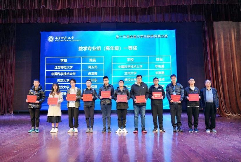 近日,第十三届全国大学生数学竞赛决赛在华东师范大学圆满落幕,中国科大参赛团队荣获佳绩。我校共16名本科生进入决赛,最终荣获9项一等奖、4项二等奖、3项三等奖,一等奖总数位列全国高校第二、非专业组一等奖总数与清华大学并列全国高校第一,在入围决赛人数、一等奖人数、获奖总数上均创我校在该赛事的近年来最好成绩。