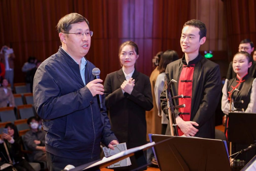最后,音乐会在民乐特别编曲的校歌《永恒的东风》大合唱中圆满落幕。校党委副书记邓建松对校学生民族乐团给予了极大的肯定,鼓励他们在更大的舞台上发光发热。