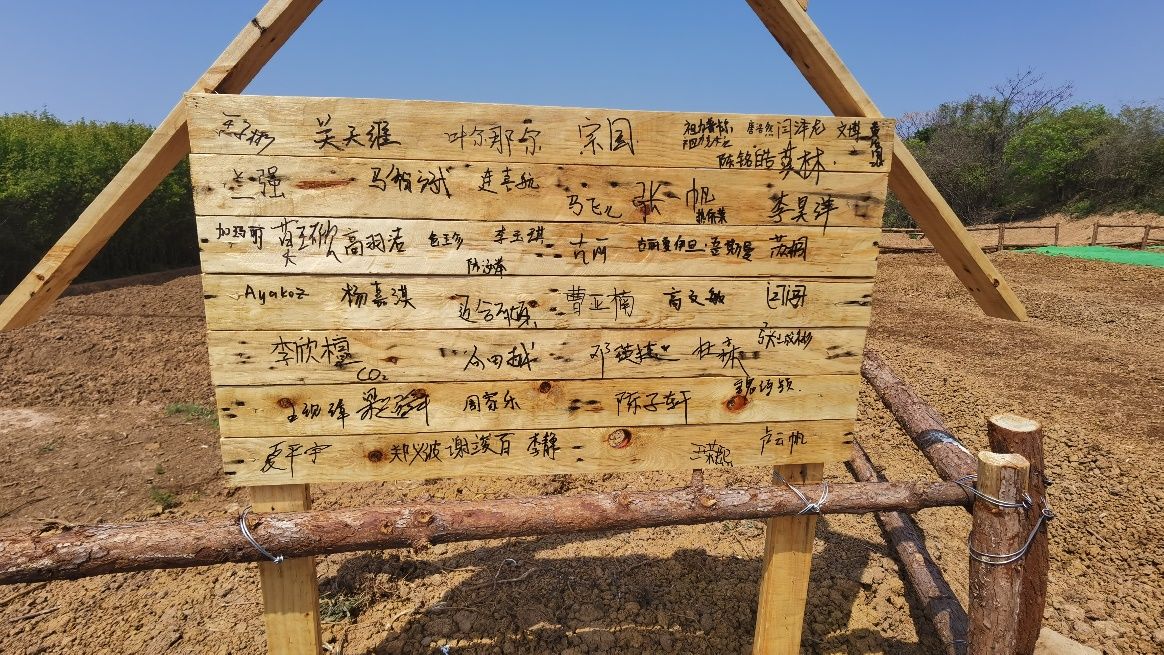 随后,同学们都带着“撸起袖子加油干”的激情与干劲来到田间,戴上手套,挥起铲子,撒种、压土、洒水,积极投入播种劳动之中。“春种一粒粟、秋收万颗子”,师生在田地旁的牌子上庄重地签下自己的名字,写下对来日收获的期许。
