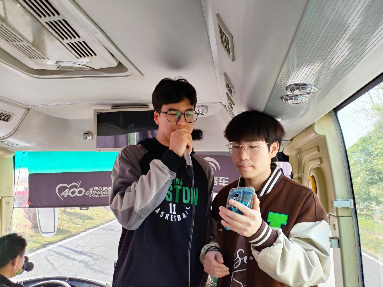 一早迎来久违的晴好天气,在党支部书记李静老师的带领下,同学们在出发的车上开展系列活动:大家逐一进行自我介绍,畅谈对此次活动的期盼和对大家的祝福,党员学长的一句“愿大家心中有火,眼中有光”引发了同学们热烈的掌声,之后同学们进行才艺表演,更是将气氛推向高潮。