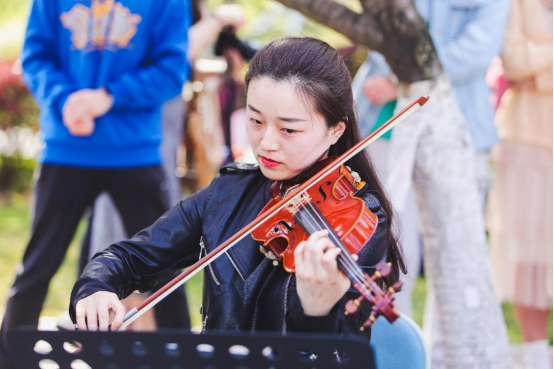 现场,合肥知名乐团结合春日主题进行现场演奏,践行“高雅艺术进校园”的活动宗旨,旨在提高同学们音乐鉴赏能力和审美能力。
