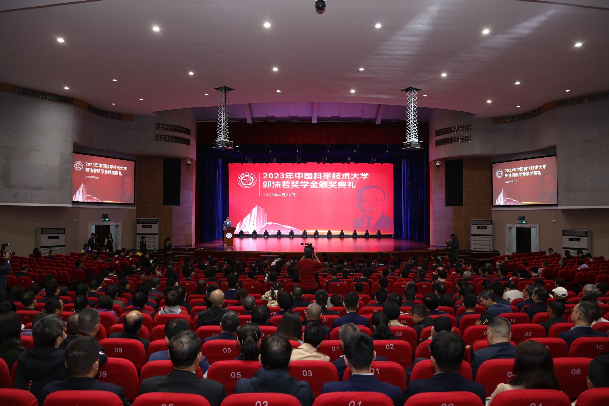 4月22日下午,2023年郭沫若奖学金颁奖典礼在东区大礼堂举行。校长包信和院士出席典礼,向获奖同学送上深情寄语,并为他们一一颁奖。校友代表、欧洲科学院院士、77级地球空间科学系校友林间,中学校长代表、合肥市第一中学党委书记、校长封安保,出席典礼并致辞。校党委副书记邓建松主持颁奖典礼。新创校友基金会理事长、99级热科学和能源工程系校友石兵,学校相关院系、部门负责人参加典礼,第41届、42届“郭沫若奖学金”部分获奖同学,以及他们的中学校长、老师、家长和亲属参加了颁奖典礼。