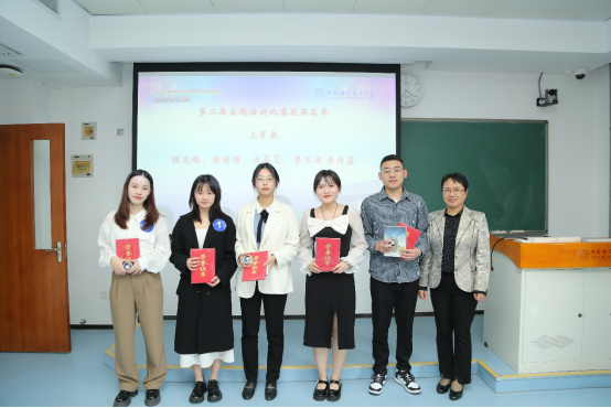 吴晓雯为三等奖选手李玉洁、李佳鑫、吴昊旻、程光媛、陈博语颁奖
