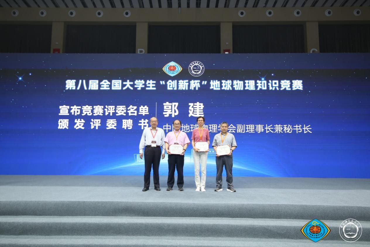 中国地球物理学会副理事长兼秘书长郭建与3组评委组组长合影留念