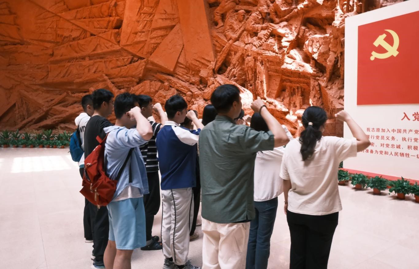 在宣誓大厅,全体党员列队整齐,面向鲜红的党旗,高举右拳,以饱满的热情重温入党誓词。大家以铿锵有力的宣誓,表达了对共产主义事业的无限忠诚与热爱,展现了为不懈奋斗的坚定信念。