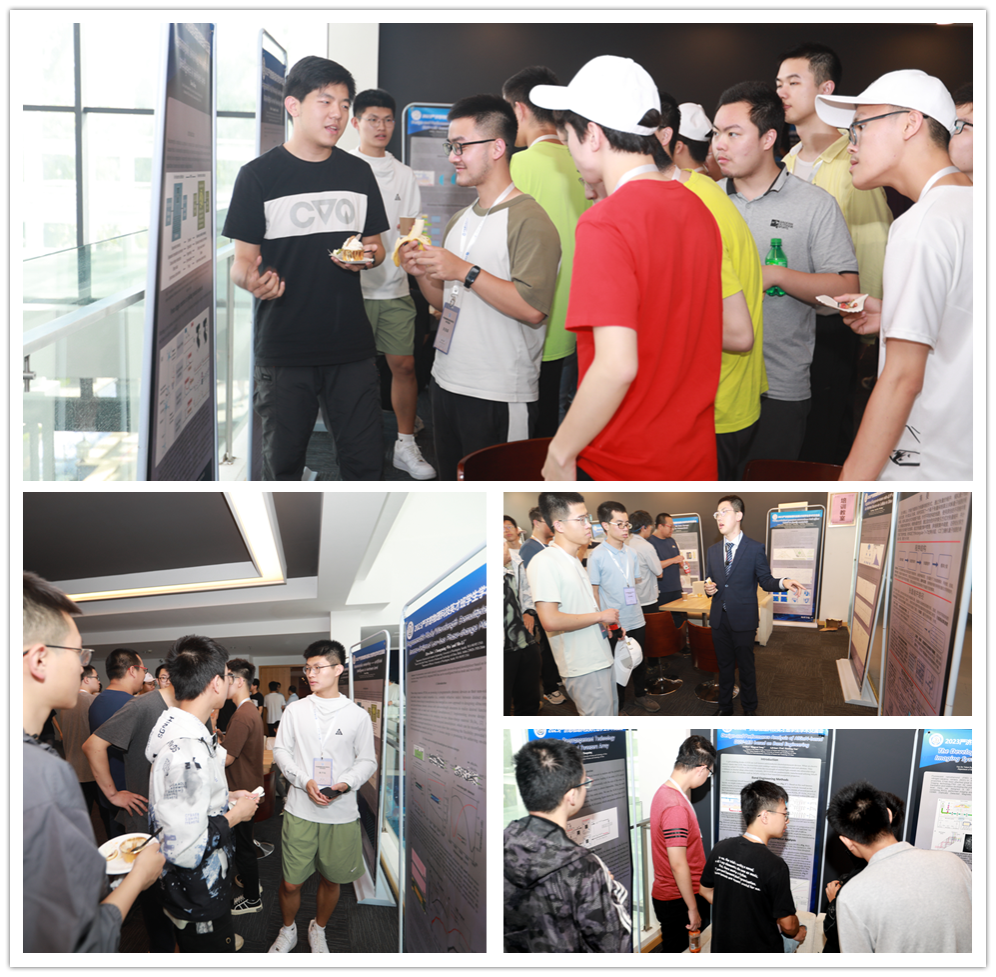 茶歇期间,会议室外的休息区摆放着宋冰睿、董天佐、徐文蔚、吴鸿铭、杨翊宸、连泓坤、黄逍、董坤、陈宝骥、张毅杰、胡德远、焦子钰、潘帅唯、陈俞茜、张肖煜15位同学精心准备的墙报。同学和老师们围绕墙报与作者展开了面对面的探讨,聆听相关介绍后同学们自发聚集的讨论,氛围轻松而愉悦。