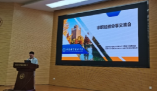 紧接着,汪思聪、吴同、吕长柱、梁庆珠、朱红恩等五位同学作关于企业求职和选调生备考的经验分享。