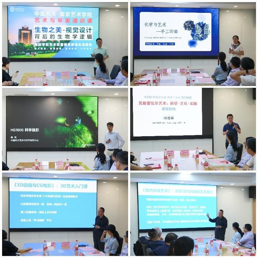 “科学之美”是艺术教学中心面向全校学生开设的系列课程,现已开设了《生物之美—视觉设计背后的生物学逻辑》《化学与艺术-手工印染》《科学摄影》《3D动画与CG电影》《当代科技艺术》,以及即将开设的《民族管弦乐艺术的科学、文化与实践》,共六门课程。现场,五名任课教师分别对课程教学案例进行汇报,展示了具有中国科大特色的美育课程成果。