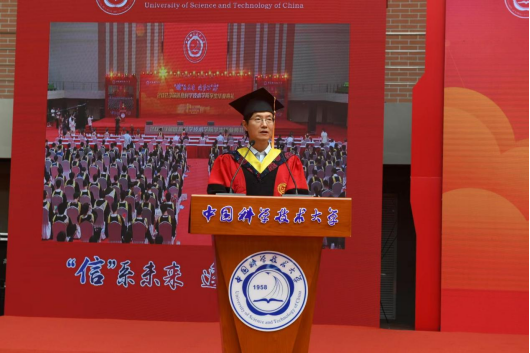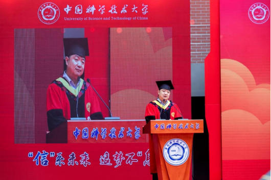 毕业典礼在庄严肃穆的国歌声中正式拉开帷幕。李斌在致辞中代表学院向圆满完成学业,即将奔赴人生新征程的2023届毕业生表示热烈的祝贺,向默默付出的教师、亲友致以崇高的敬意。他寄语同学们要始终秉承“红专并进、理实交融”校训精神,继续发扬科大人开拓创新的优良传统,当好母校的“代言人”。